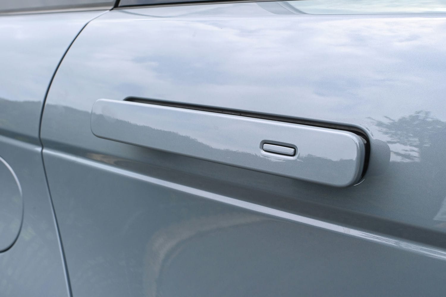Sang đến phần hông, bóng dáng của Velar tiếp tục xuất hiện với tay nắm cửa tự động thụt vào trong khi xe di chuyển đậm chất thời trang. Phần mái cũng thời thượng không kém với kiểu dáng vát nghiêng về.